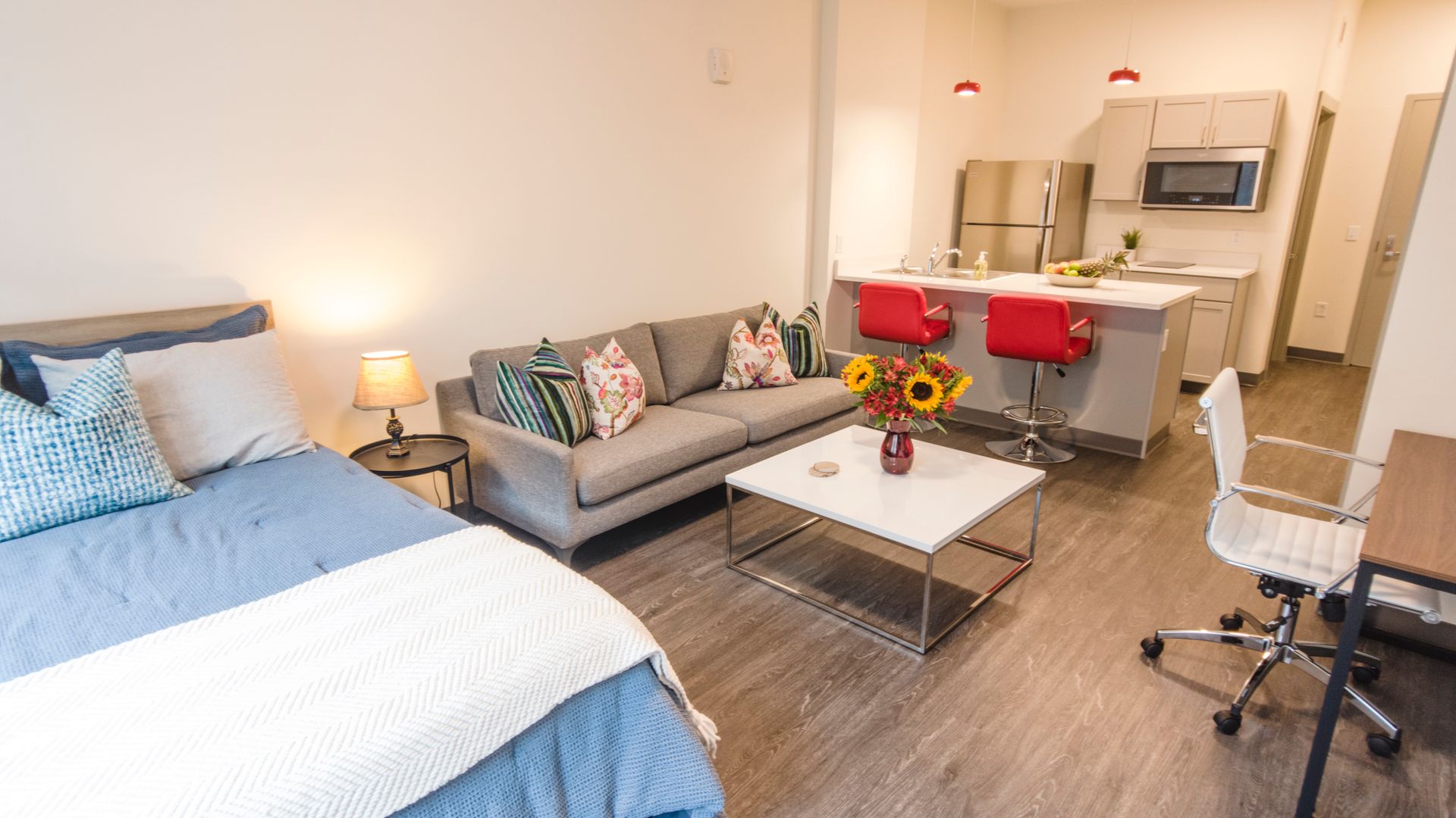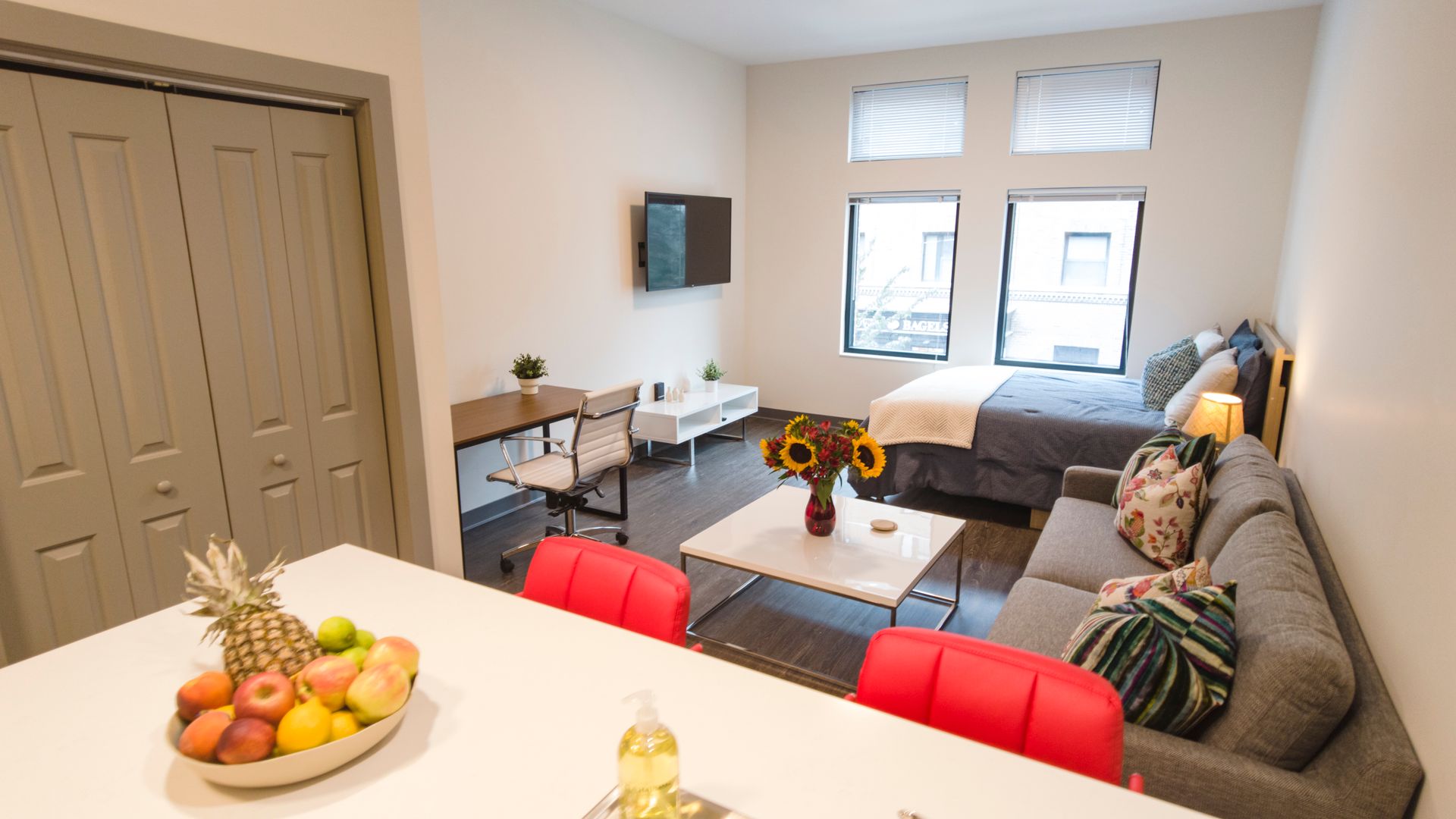 Newly constructed luxury apartments in the most convenient location in Collegetown. Units come fully furnished with beds, mattresses, desks, dressers, couches, chairs, wall mounted TVs and either tables or built-in islands with stools. Kitchen appliances include: electric cooktops, convection microwaves, and full-sized fridges.