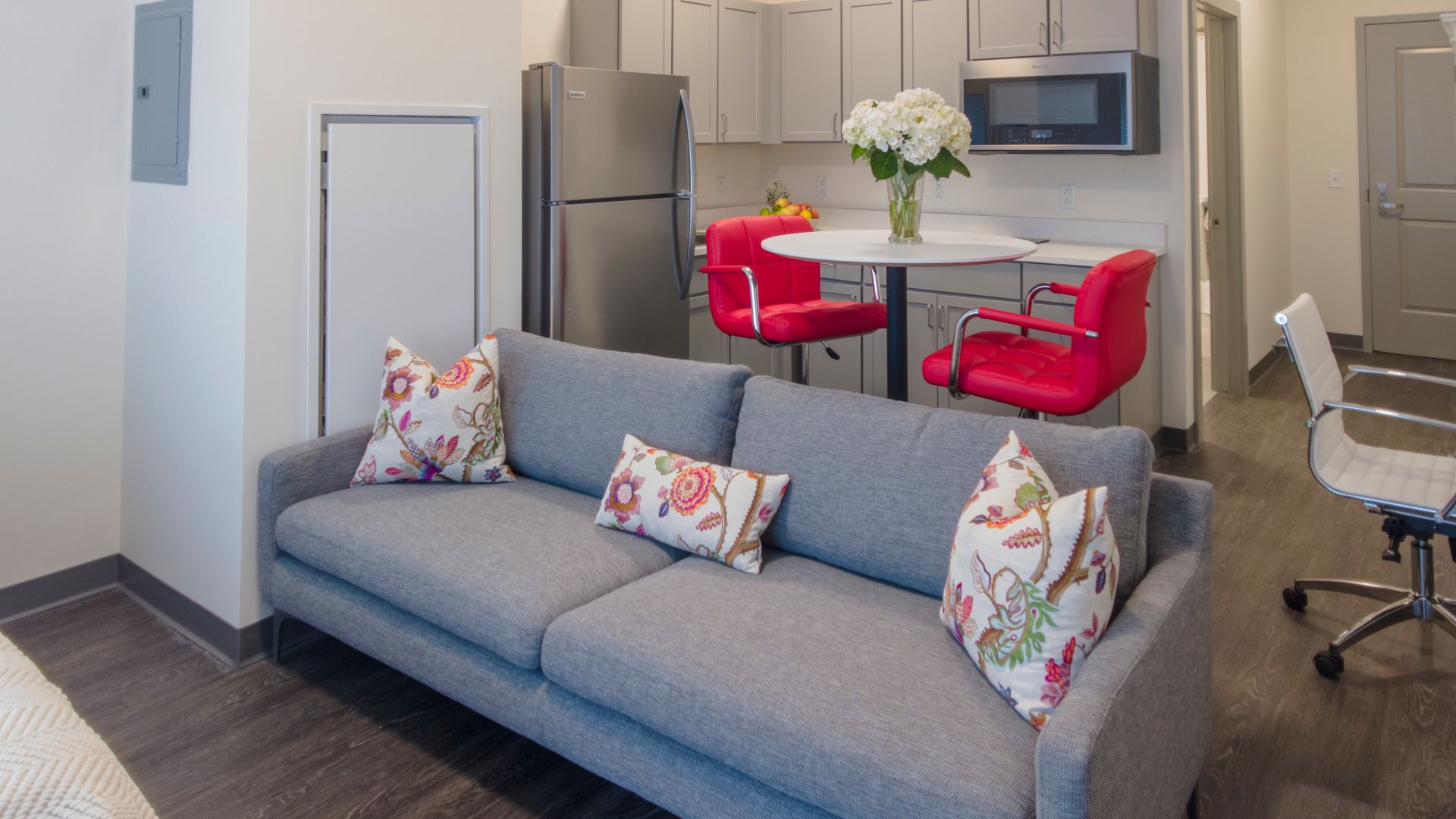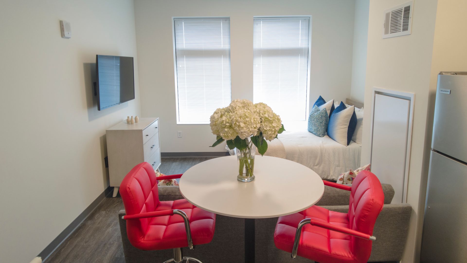 Newly constructed luxury apartments in the most convenient location in Collegetown. Units come fully furnished with beds, mattresses, desks, dressers, couches, chairs, wall mounted TVs and either tables or built-in islands with stools. Kitchen appliances include: electric cooktops, convection microwaves, and full-sized fridges.